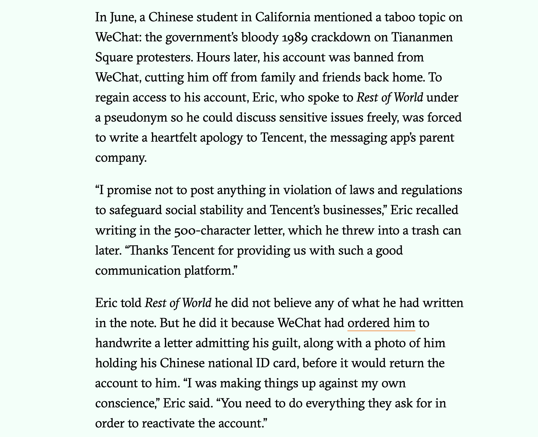 To those that do appreciate freedom, the concern is clear - WeChat has essentially become required to live in China, has surveillance and censorship integrated at its core, and if you are banned from the app your entire livelihood is at risk. Employment, housing, payments, travel, communication, and more become extremely difficult if WeChat censors determine you have acted out of line.
