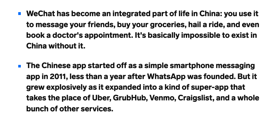 To those that do not appreciate freedom, the value prop is clear - WeChat is incredibly powerful and successful in China.